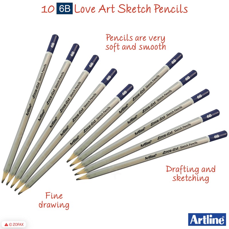 artline 10 x 6B Graded Artist Professional Pencils Write Draw Sketch Shade + ZOFAX Biro BLACK Pen