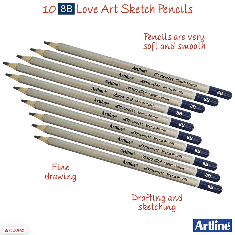 artline 10 x 8B Graded Artist Professional Pencils Write Draw Sketch Shade + ZOFAX Biro BLACK Pen