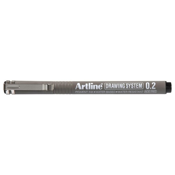 Artline, 123201, Drawing System Pen, Metal Reinforced Nib, 0.2mm, Black, 12 Pack