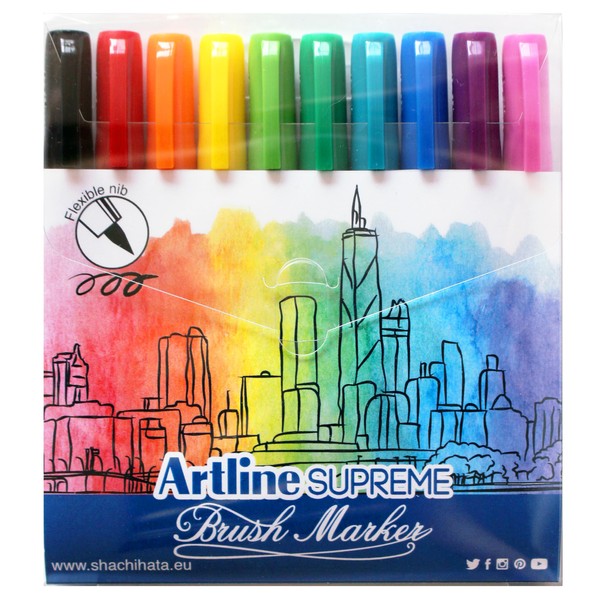 Artline Supreme Brush Marker Assorted Pack of 10 Colours