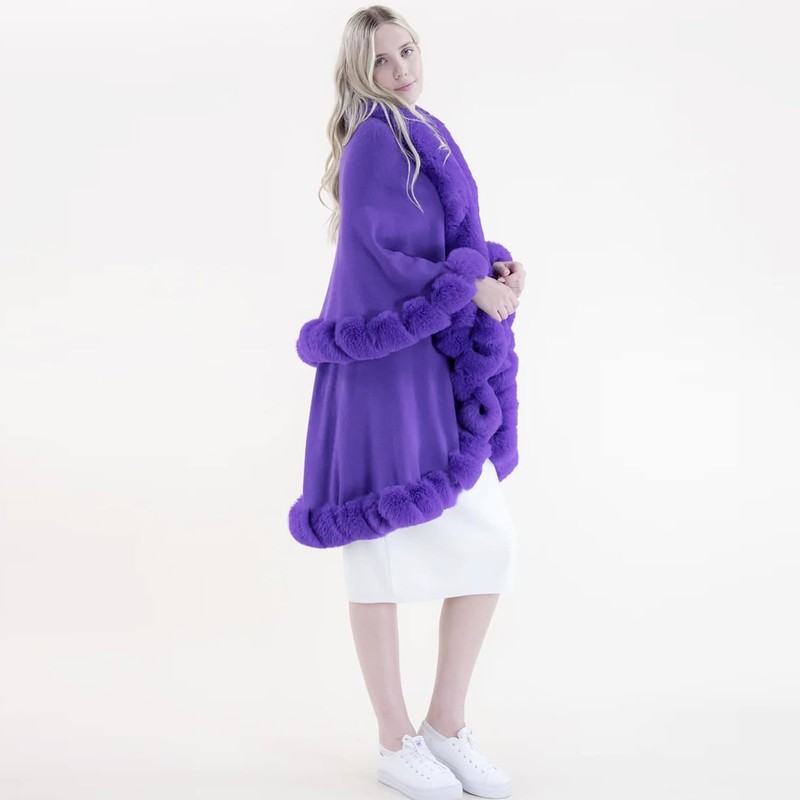 ARTMASK.US Chic Fur Double Layer Cape Faux Fur Cape Party Coat Open Front Ruana Cape (Purple)