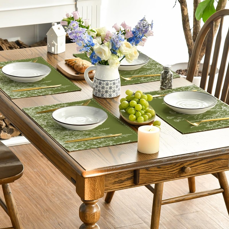 Artoid Mode Antique Herbs and Wild Flowers Spring Placemats Set of 4, 12x18 Inch Seasonal Sage Green Summer Table Mats for Party Kitchen Dining Decoration