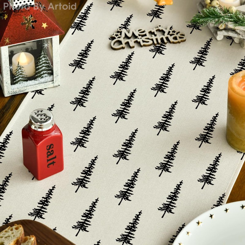 Artoid Mode Black Trees Christmas Table Runner, Winter Xmas Kitchen Table Decoration Indoor Holiday Party Decor 40 x 100 cm