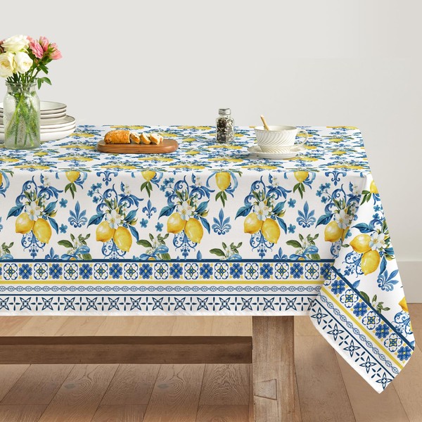 Artoid Mode Blue Lemon Iris Summer Table Cloth, Rectangular 140x220 cm Spring Decorative Table Cover Protector For Party Home Table Decorations