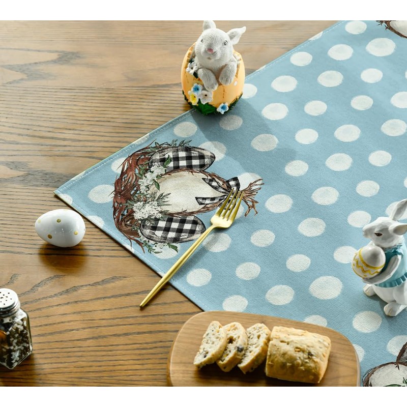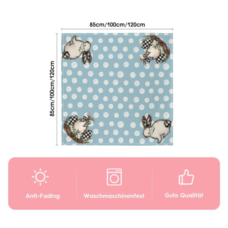 Artoid Mode Blue Polka Dots Rabbit Easter Eggs Easter Tablecloth, Table Linen Spring Kitchen Table Decoration Indoor Holiday Party Decor 85 x 85 cm