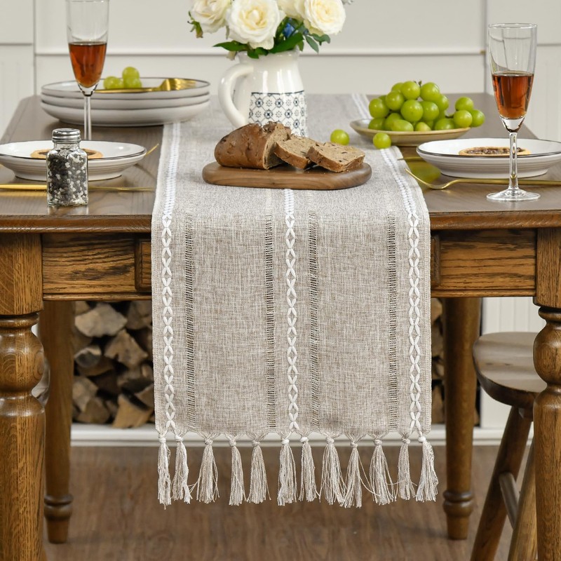 Artoid Mode Boho Latte Beige Country House Style Tassels Table Runner, Washable Table Decoration Party Birthday Valentine's Day Wedding Decor 33 x 143 cm