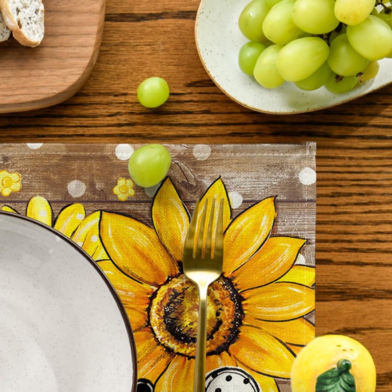Artoid Mode Brown Sunflowers Bees Spring Place Mats Set of 4 30 x 45 cm Summer Holiday Placemats Washable Place Mats Kitchen Party Decoration