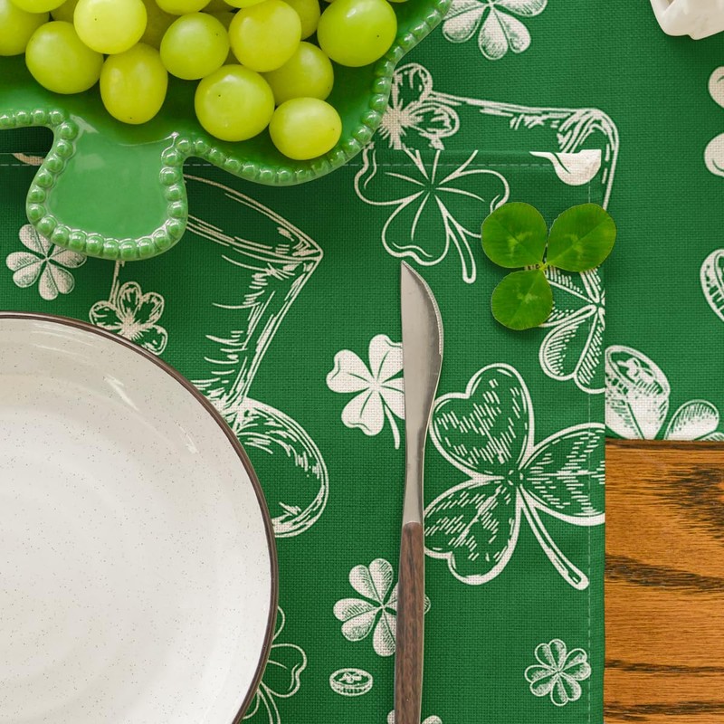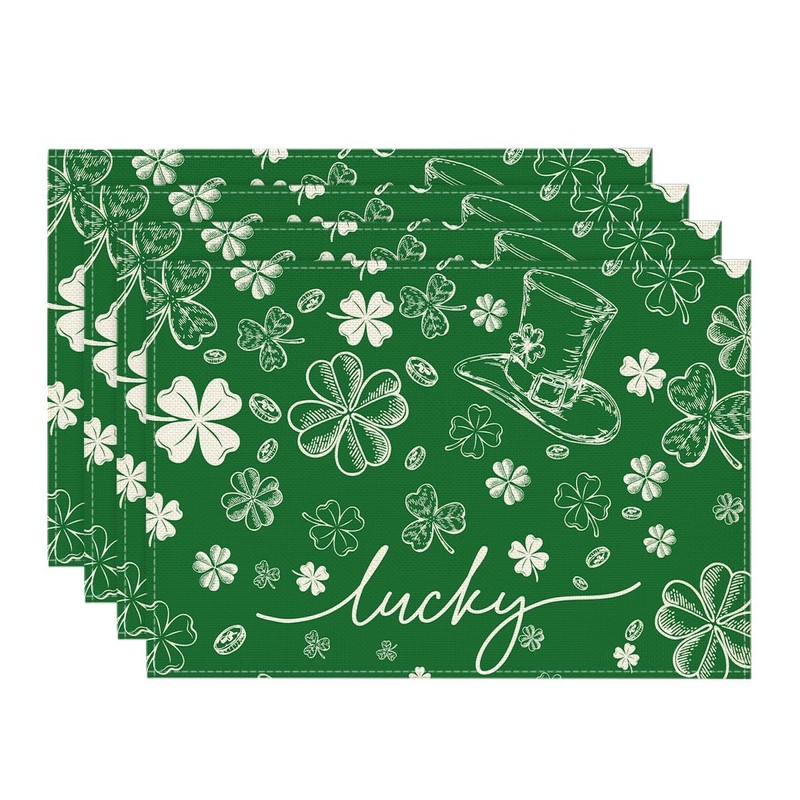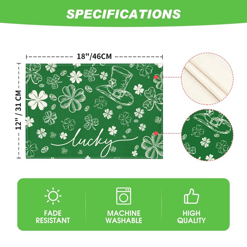Artoid Mode Hat Clover Shamrocks Lucky St. Patrick's Day Placemats Set of 4, 12x18 Inch Seasonal Spring Table Mats for Party Kitchen Dining Decoration