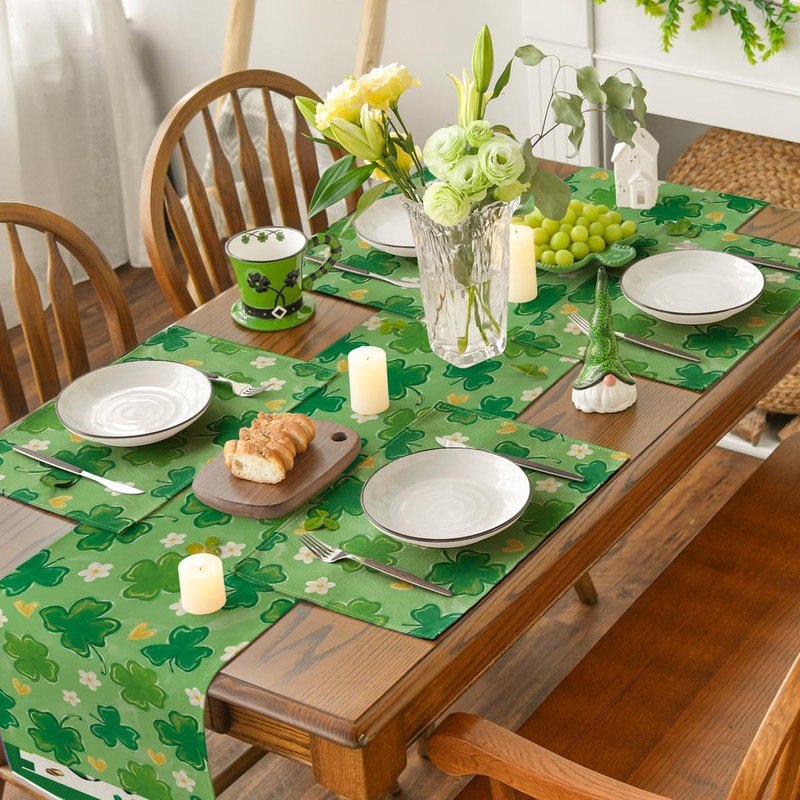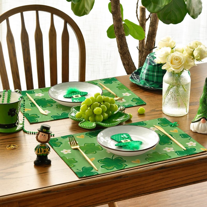 Artoid Mode Heart Flowers Clover Shamrocks St. Patrick's Day Placemats Set of 4, 12x18 Inch Seasonal Spring Table Mats for Party Kitchen Dining Decoration