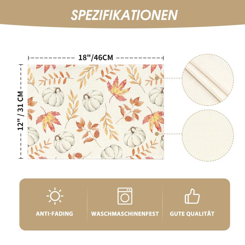 - EASY TO CLEAN Machine wash and lay the placemat flat to dry. Stays the same and like new after every wash. Material: 100% polyester, no shrinkage, no gradient. Imported, Country of origin: China