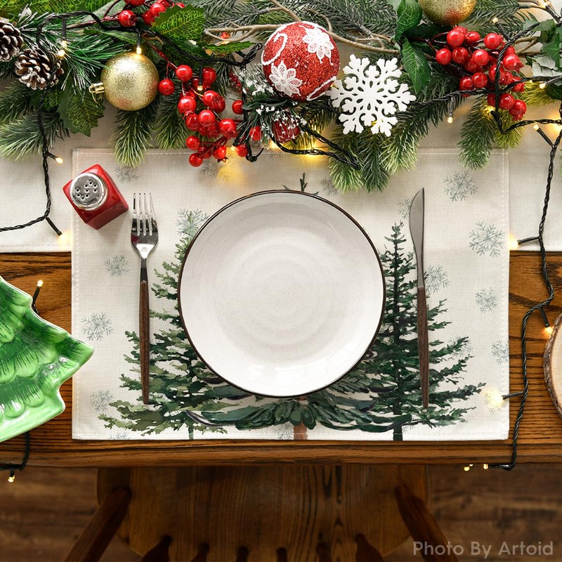 Artoid Mode Pine Trees Snowflakes Christmas Placemats Set of 4, 30 x 45cm Seasonal Winter Xmas Holiday Vintage Washable Table Mats
