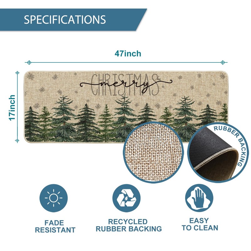 Artoid Mode Pine Trees Snowflakes Merry Christmas Doormat, Winter Home Decor Low-Profile Door Mat Floor Mat 17x47 Inch