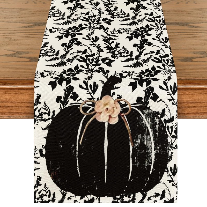 Artoid Mode Pumpkin Leaves Darkness Flower 210 GSM Fall Table Runner, Seasonal Autumn Kitchen Dining Table Decoration for Home Party Decor 13x90 Inch