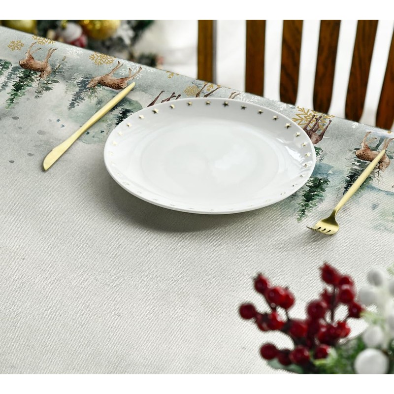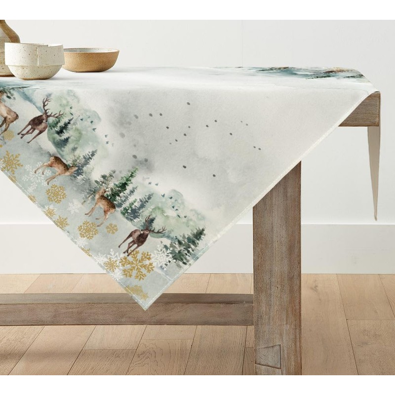 Artoid Mode Reindeer Trees Christmas Tablecloth, Seasonal Table Linen, Winter Kitchen Table Decoration, Indoor, Holiday, Party Decor, 85 x 85 cm