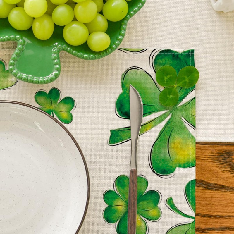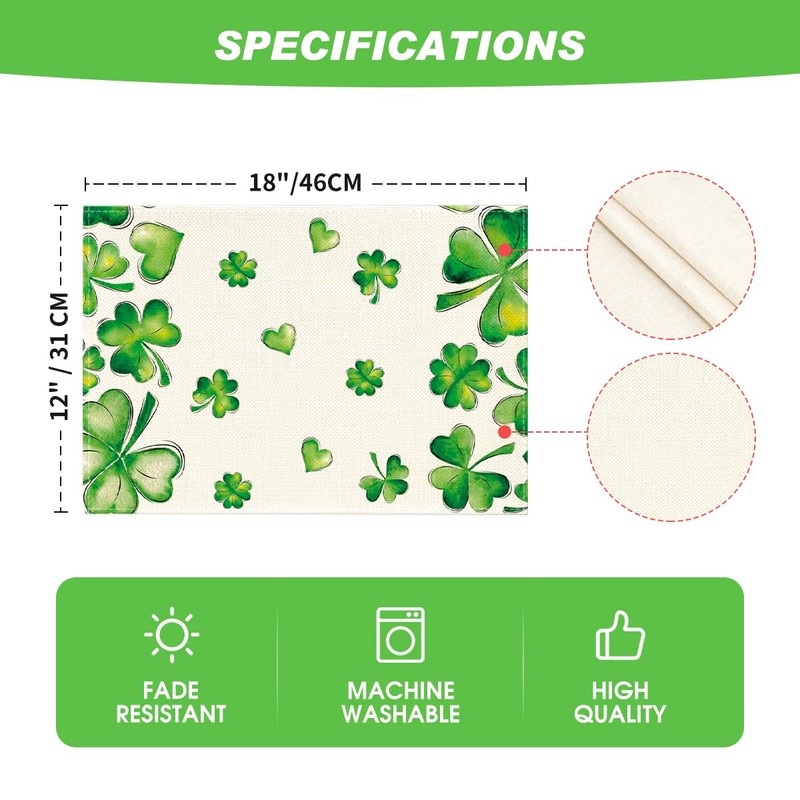 Artoid Mode Shamrock Clover Lucky Irish St. Patrick's Day Placemats Set of 4, 12x18 Inch Seasonal Spring Table Mats for Party Kitchen Dining Decoration