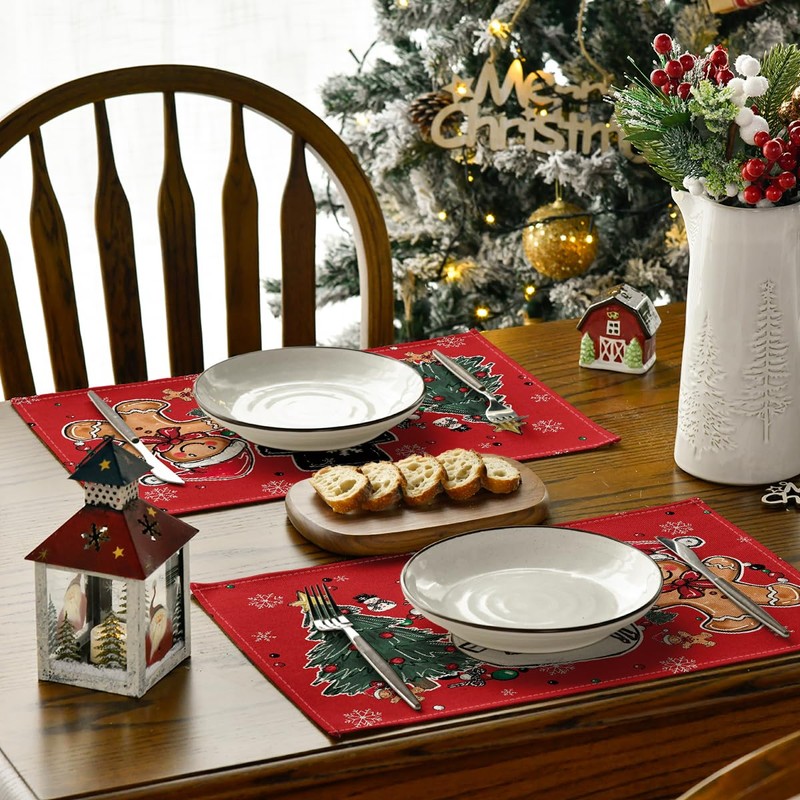 Artoid Mode Snowman Tree Gingerbread Red Christmas Placemats Set of 4, 12x18 ...