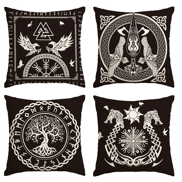Artoid Mode Viking Tree of Life Raven Helmet of Awe Cushion Covers Set of 4 40 x 40 cm Decorative Cushion Cover Couch Living Room Decoration