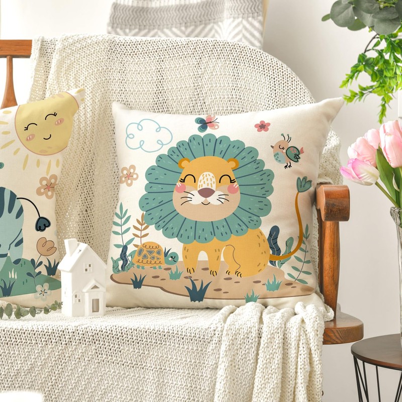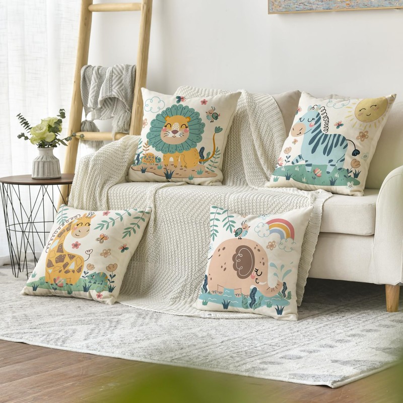 Artoid Mode Wildtiere Giraffe Elefant Zebra Löwe Dschungel Kinder Kissenbezüge 4er Set, 45x45 cm Zierkissenbezug Cushion Cover Couch Wohnzimmer Deko