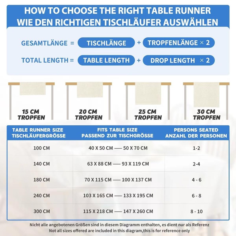 - FITS TABLE SIZE This table runner is 40 x 100 cm and is suitable for a table that can seat 1-2 people. Match your table better and give you a delightful dining experience