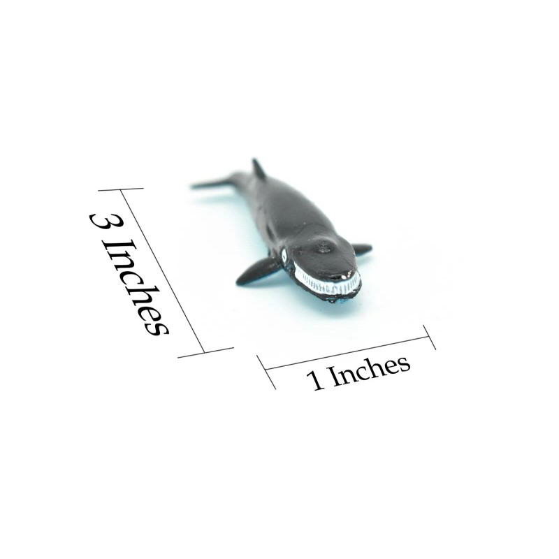 Our Baleen Whale has a black upper body, blue lower body and white baleen. He has grooves on his throat which identify him as a member of the rorqual (Norwegian for furrow) family. Rorqual whales have 25-90 throat grooves that expand accordion-like when feeding. Please note! This small baleen whale toy is made of solid plastic and does not actually float in water. We think he'd make a wonderful addition to your sea-life diorama or school project. He can also be used as a toy or added to your animal collection. Be sure to look over our other whale toys and gifts.