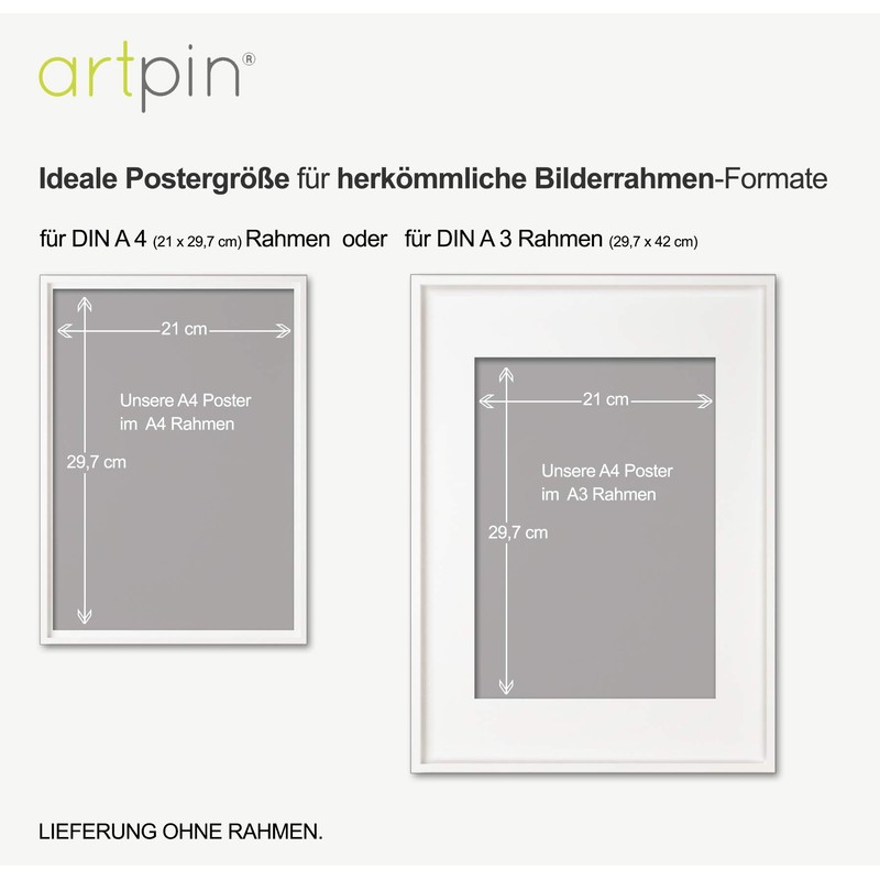 - High-quality print on 300 g/m² premium paper with a silk matte surface, set of 3, DIN A4, (without picture frame). An ideal size for standard frame formats. The art prints are sent in sturdy packaging. They are perfect on the wall both in picture frames and with pins.