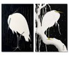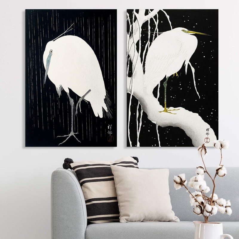 artprints1stop 2-Panel Canvas Print Wall Art - Egret in The Rain & Heron in Snow by Japanese Painter Ohara Koson - 24x36 inches Each Panel