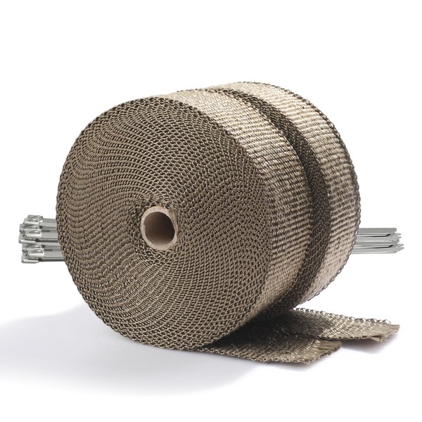 ARTR Titanium Exhaust Header Wrap 2 Rolls (2" x 50' Each roll) Kit with 20pcs 11.8 Inch Stainless Steel Locking Ties