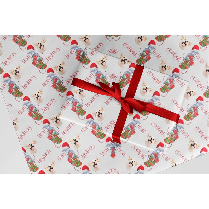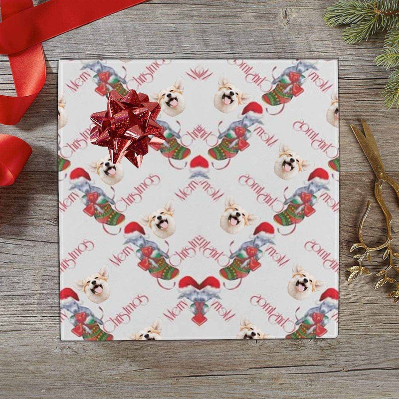 Artsadd Custom Christmas Gift Wrapping Paper with Dog Face Personalized Pet Photo on Gift Wrapping Paper Roll Christmas Socks