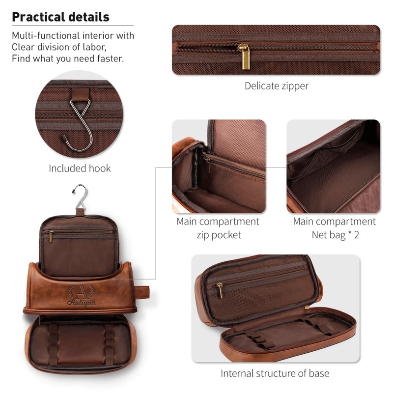 High Quality Material: This toiletry bag for men is made of PU leather and waterproof material, smooth and soft, not easy to fade. The surface is waterproof and dirt-resistant. Luxurious classic vintage look built to last.
