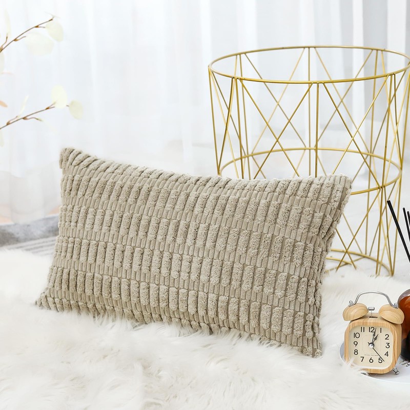 Artscope Corduroy Set of 1 Cushion Cover 40x60 cm Super Soft Boho Striped Lumbar Pillow Covers Case Decorative Modern Cushion Covers for Sofa Couch Bedroom Car Decor Khaki