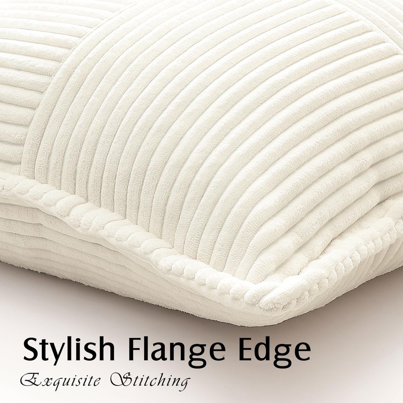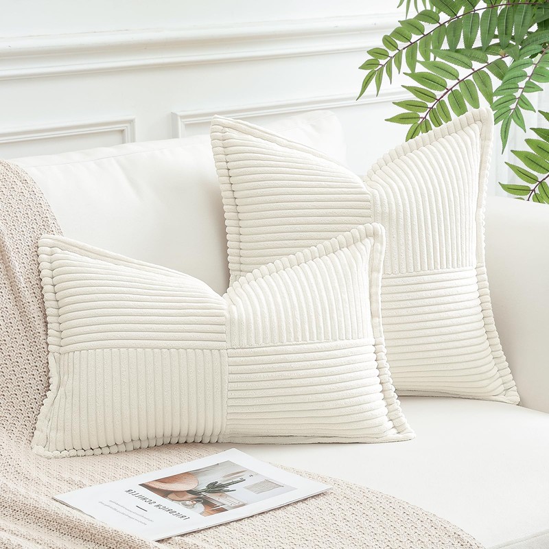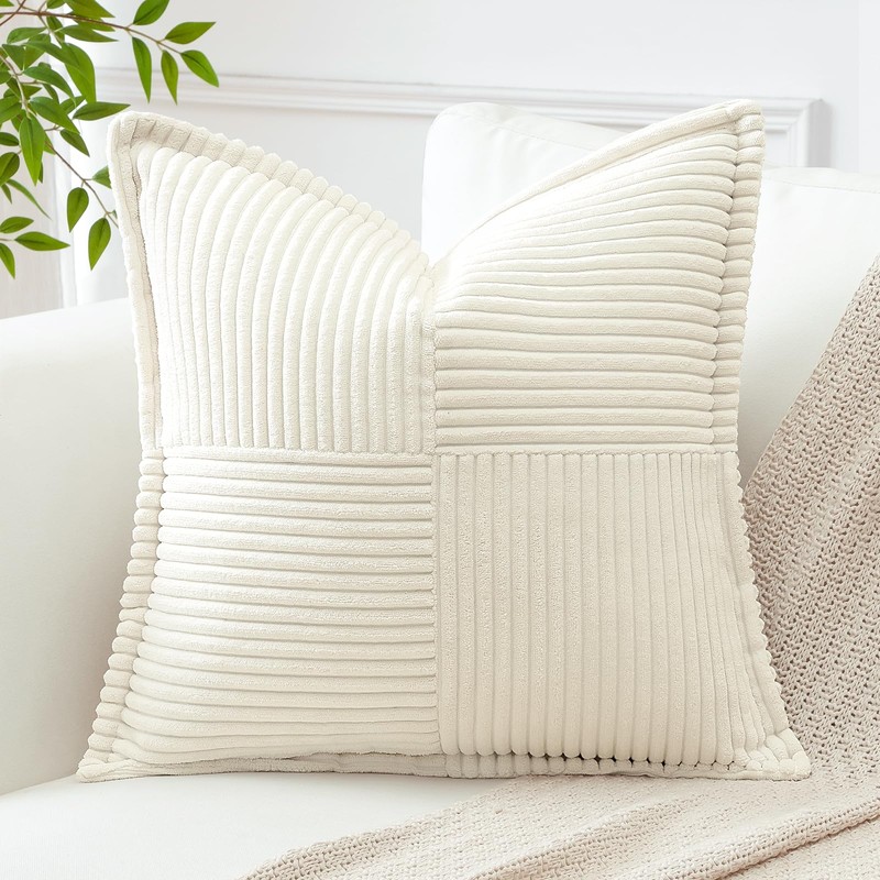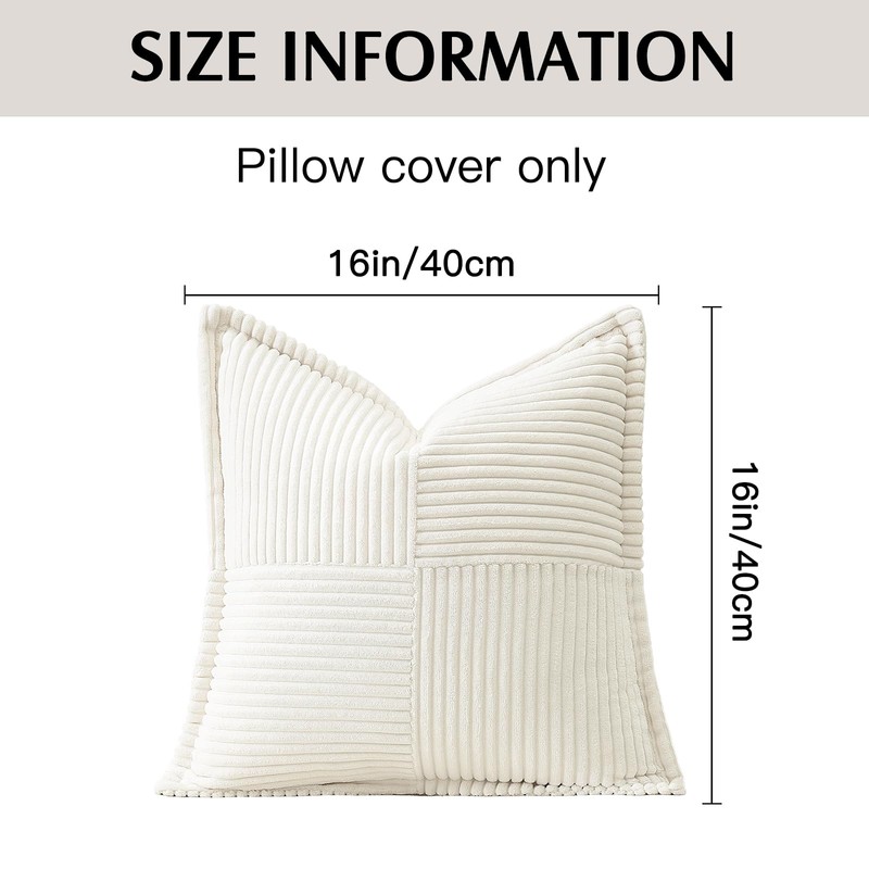 Artscope Striped Corduroy Cushion Covers with Splicing Super Soft Boho Pillow Covers Broadside Decorative Textured Throw Pillows for Couch Sofa Bed Living Room 40x40cm, Cream Beige