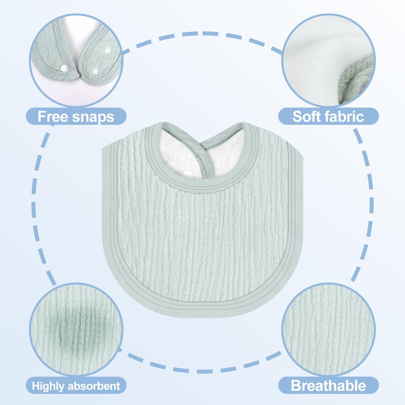 - [Super Absorbent] Muslin bibs feature a double-layer design that quickly absorbs liquids and saliva, keeping your baby's clothes dry and protecting their sensitive skin.