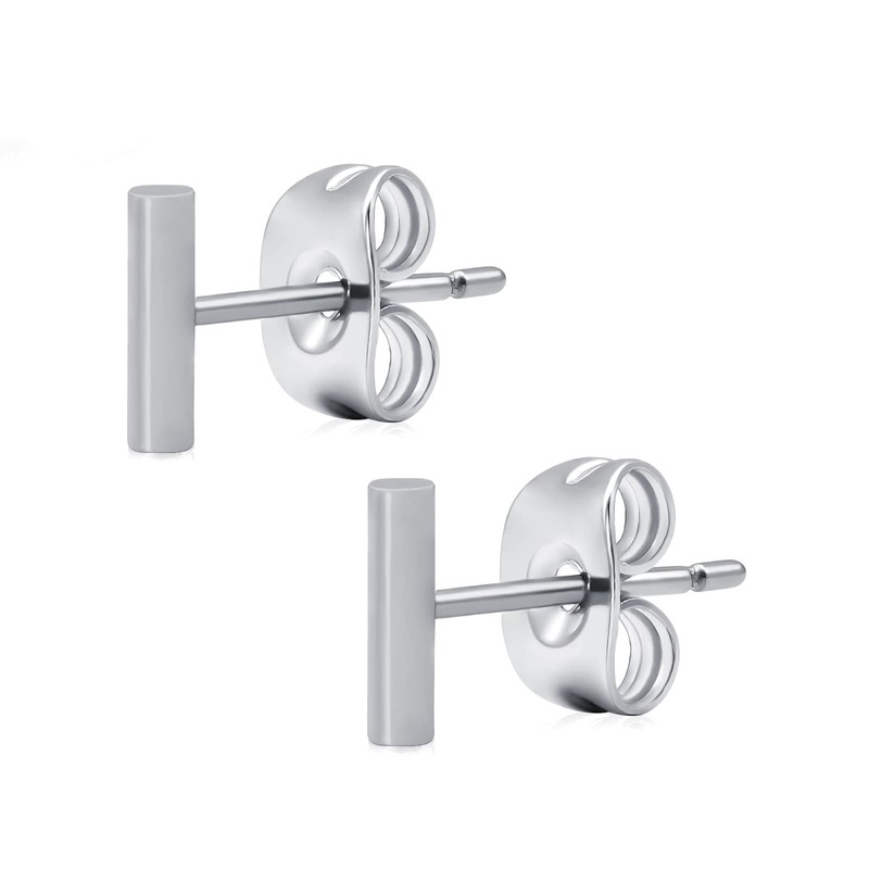 Artskin Women Earrings Flat Titanium Earrings Nickel Free Hypoallergenic Stud Earrings for Sensitive Ears Dainty Earring Studs for Women Girls Men (Bar-Silver)