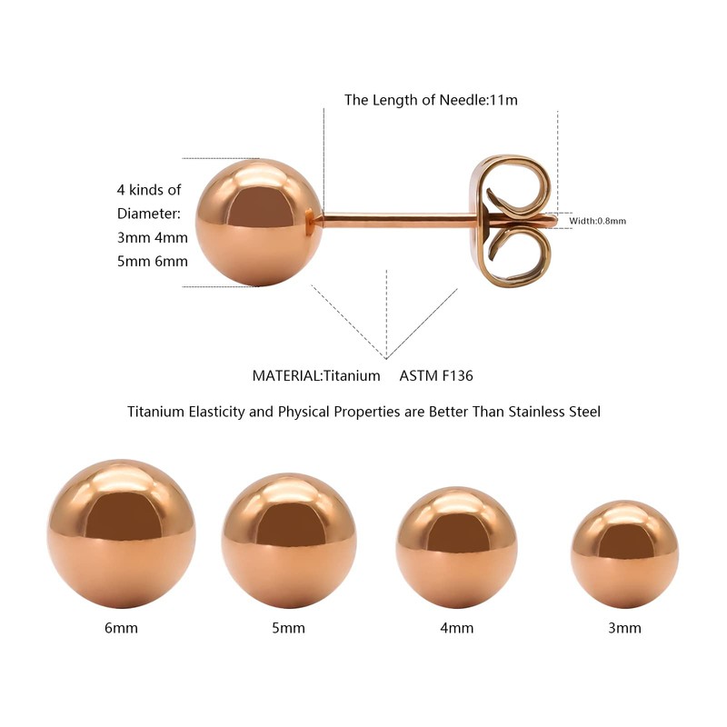 Artskin Women Stud Earrings Girls Titanium Earrings Hypoallergenic Classic 5mm Anti Allergy Rose Gold Plated Round Ball Men Earrings for Sensitive Ears