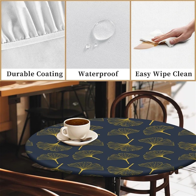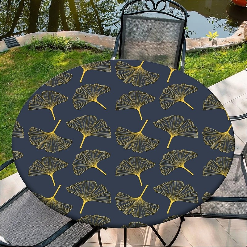 artslion Outdoor Round Tablecloth with Elastic Band 44In-110cm Elastic Garden Tablecloth with Ginkgo Leaf Pattern Fits 38"-42" Wide Tables