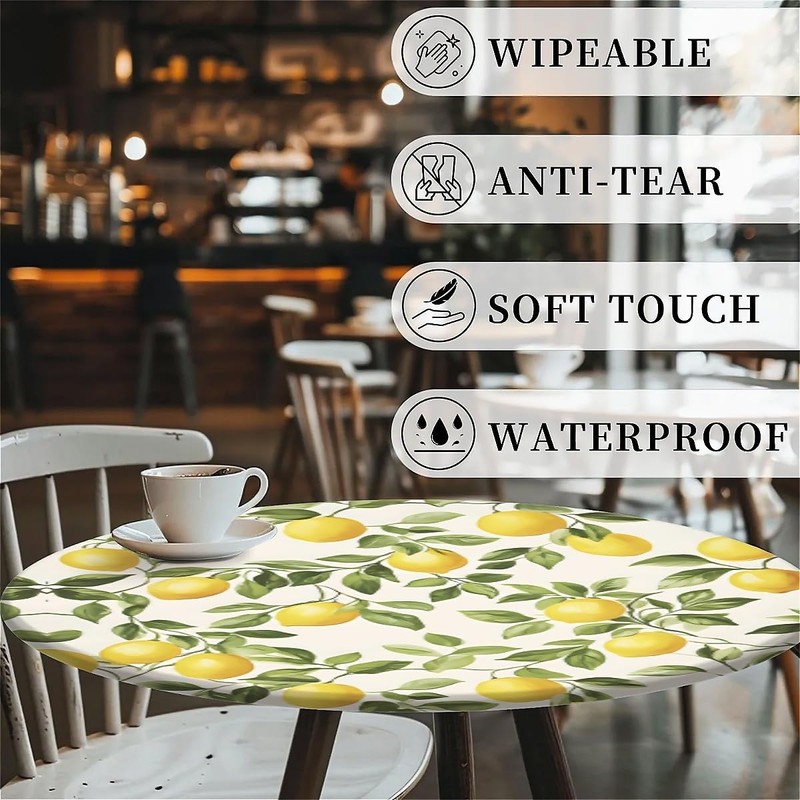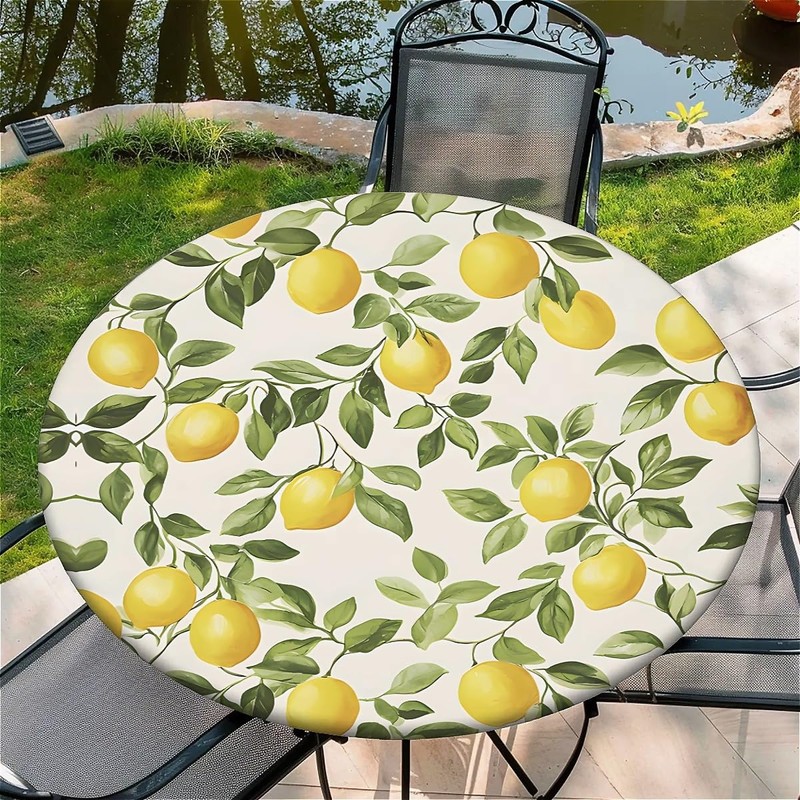 artslion Outdoor Round Tablecloth with Elastic Band 60In-150cm Elastic Garden Tablecloth with Lemon Pattern