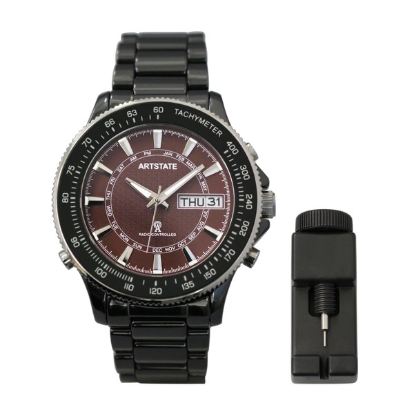[ARTSTATE W335B]腕時計 メンズ 電波時計, 日付と曜日の表示, ライト機能搭載, ブラック,セラミック製,長いバッテリー寿命