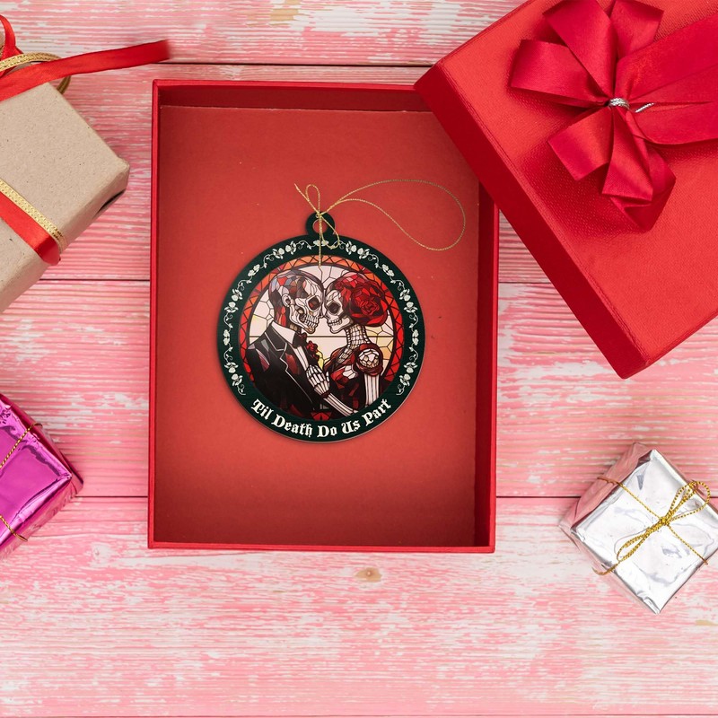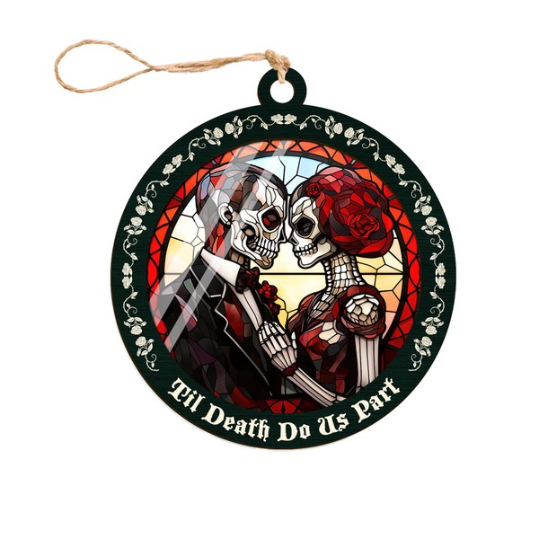 Artsy Woodsy Skull Couple Love Valentine's Day Suncatcher Ornament Christmas Tree Decor, Gothic Skeleton Couple Engagement Wedding for Couple, Skull Kitchen Accessories