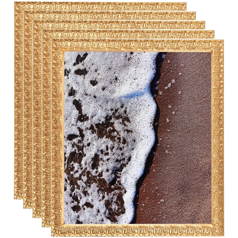 ArtToFrames 11x14 Inch Gold Picture Frame, 5 - Pack, This 1.00 inch Custom Wood Poster Frame is 1" Wide - Versailles Gold, Comes with Regular Glass (Frame_Pack_5_D11239-11x14)
