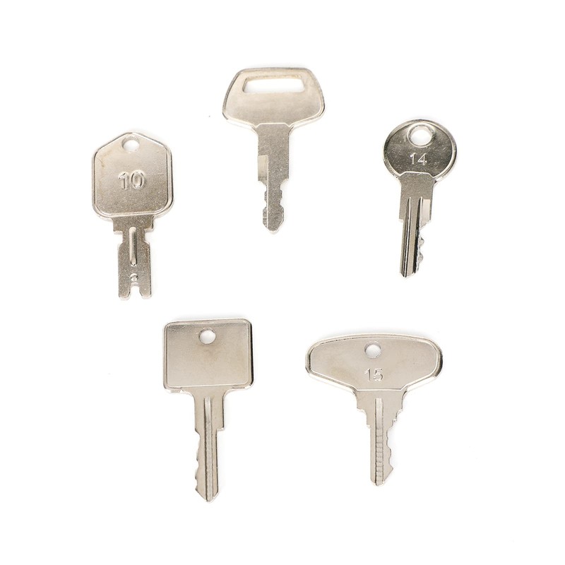 5. Caterpillar Ignition (#11P): fits Cat Ignitions from 1970’s to date, cab doors, side panels, Cat padlocks, Cat Dozers, Backhoes, Compactors, Articulated Trucks, Excavators, Motor Graders, Skid Steers, Tracked Tractors, Wheel Dozers, Wheel Loaders, Log Skidders, ASV Skid Steer, Tigercat and many others.