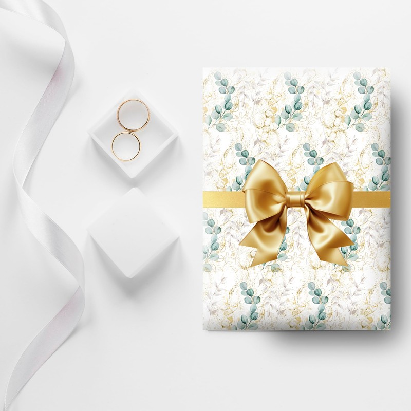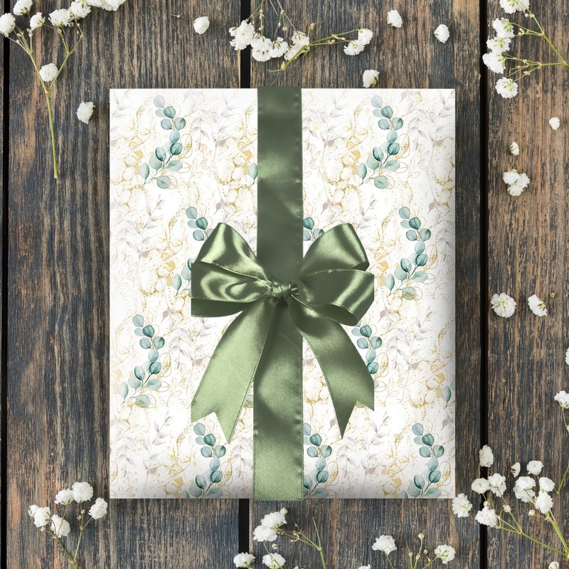 - Elegant gift paper with eucalyptus design – the stylish wrapping paper in eucalyptus lotus design with elegant gold accents is perfect for special occasions. Whether wedding, confirmation, youth dedication or birthday – the modern botanical motif ensures a high-quality look when giving as a gift. Ideal for adults, teenagers and anyone who values stylish packaging. Decorative, high quality and versatile to combine with bows, ribbons or pendants.