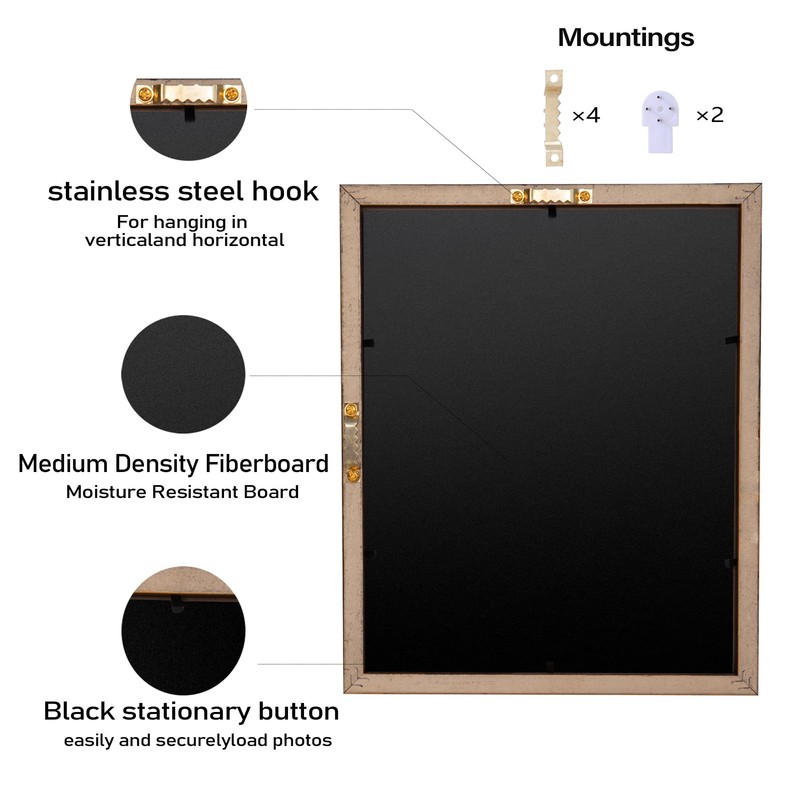 ArtXO 16"x20" Picture Frame Wooden, Display Pictures 11"x14" with Mat or 16"x20" Without Mat, Gold Bamboo Poster Frames,Hanging Photo Frame Wall