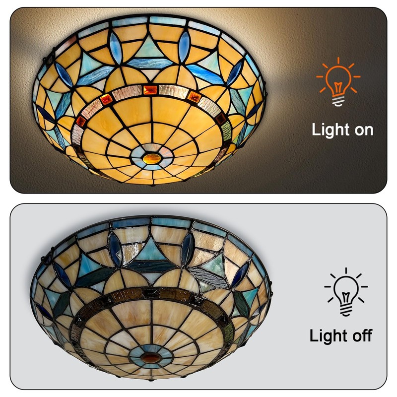 - [High Quality Tiffany Flush Mount Ceiling Light] ARTZONE 's Tiffany lights Can be used as a collector's item for a reason. We Design carefully and focus on details, we use real stained glass to make a gorgeous and durable Tiffany style light, surprise for you and your family.