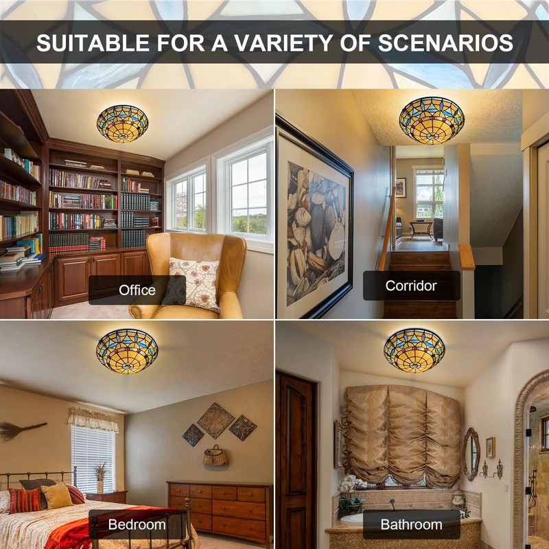 - [Beautiful Tiffany Styled Ceiling Light is the perfect Decoration] Since tiffany piece is individually crafted thus creating its unique beauty. Not only suitable for kitchen, hallway, bedroom, but can be birthday gift, mother's day gift or other holiday gifts, vivid colors will get lots of compliments.