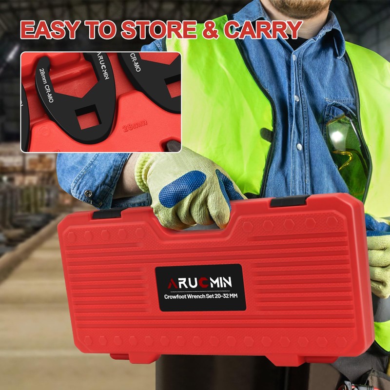 • 【HIGH QUALITY MATERIAL】: ARUCMIN crows foot wrench set is made of heat-treated Chromium Molybdenum Steel, which is stronger and more durable.The surface manganese blackening treatment prevents rust and prevents corrosion. Extends service life.