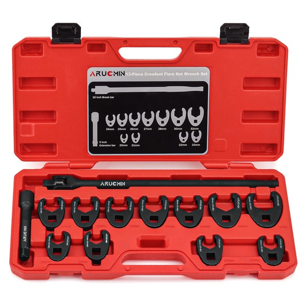 ARUCMIN 1/2" Drive Crowfoot Flare Nut Wrench Set,13-Piece Chrome Vanadium Ste...