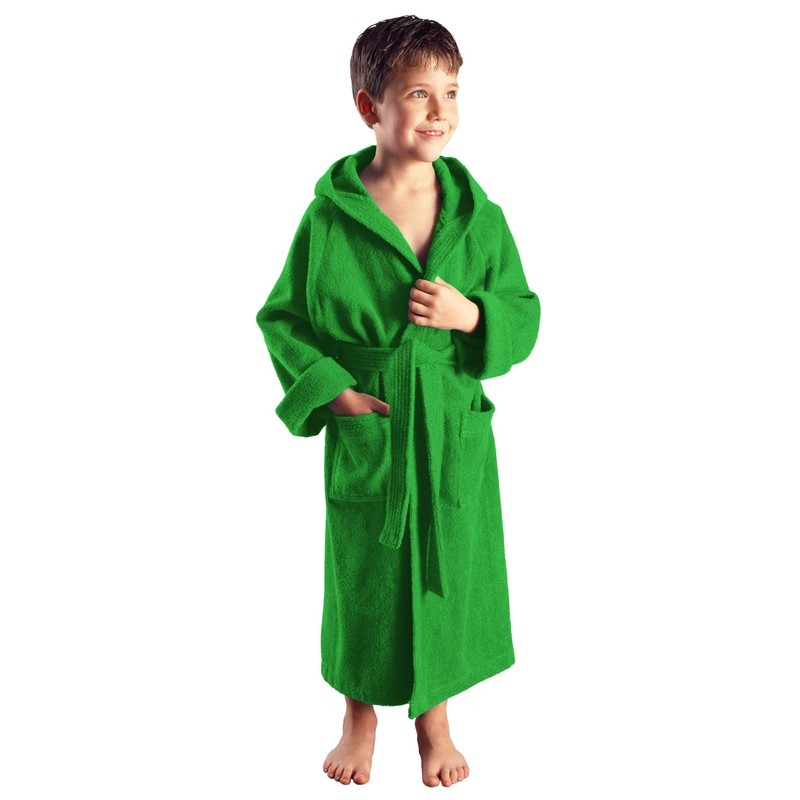 Arus Children's Bathrobe with Hood for Boys and Girls, 100% Cotton Terry Towelling, Long, Oeko-Tex Certified, Large Choice of Colours, Frog Green