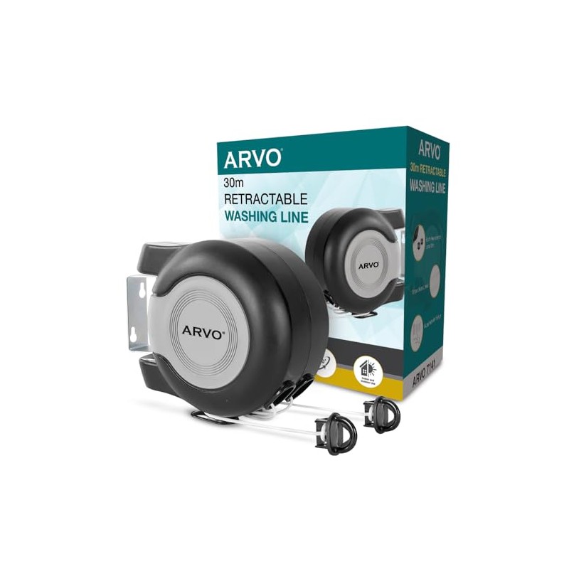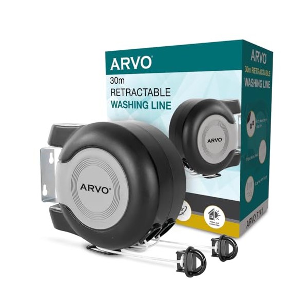ARVO ARVO Wall Mounted Double Retractable Washing Line - 30m Clothes Line - Value Range Extendable Laundry Drying Line - 2 x 15m Cables for Indoor & Outdoor Use