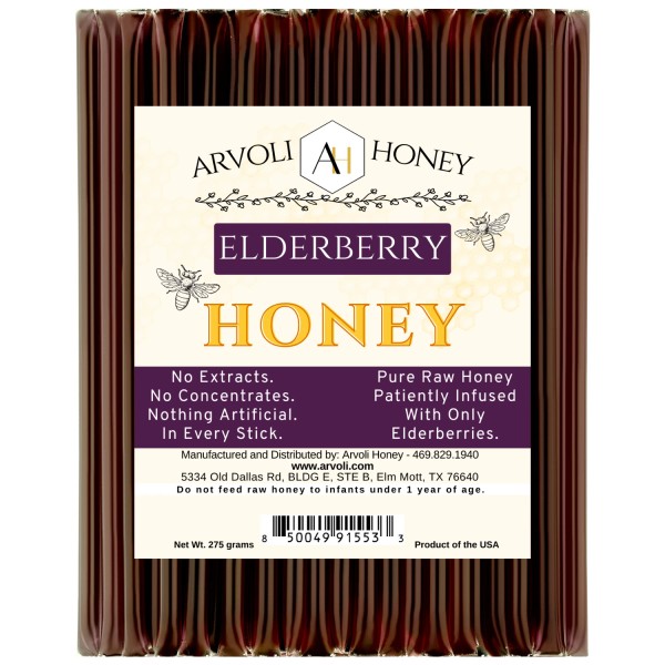 Arvoli Honey Elderberry infused Honey Sticks (50 pack) - ALL Natural