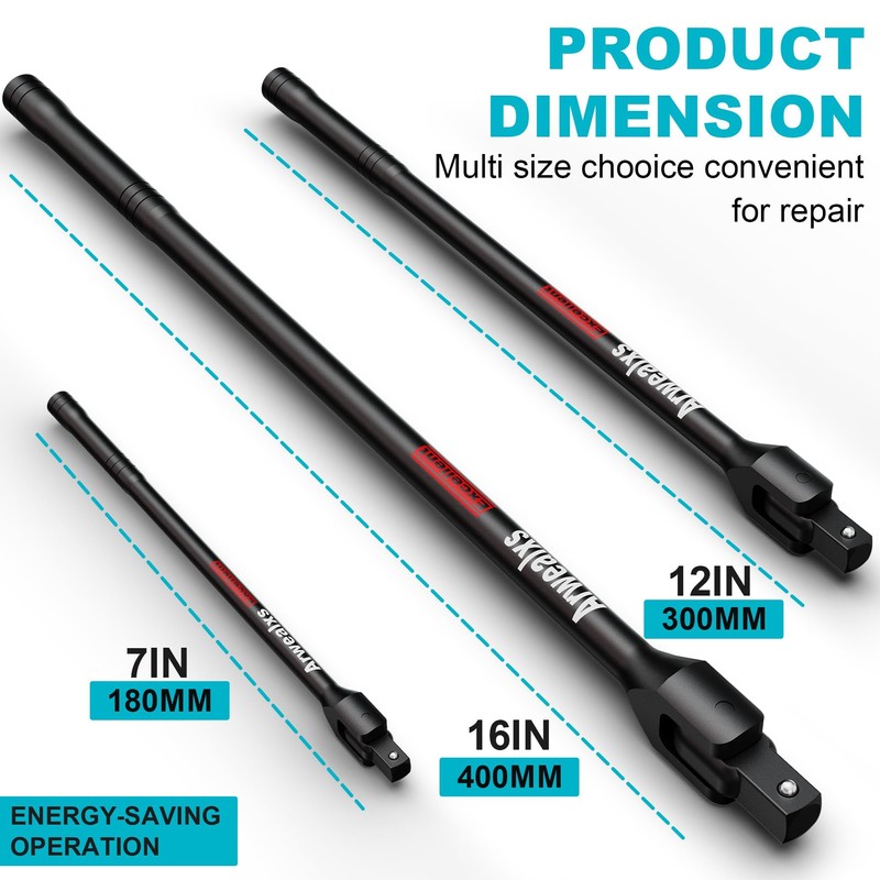 - Made of premium high-strength Chrome Vanadium steel with a forged and hardened chrome alloy steel construction that resists corrosion for optimal strength and extended service life. Each extension bars feature a black finish, for easy cleanup